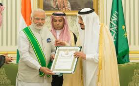 | Prime Minister Narendra Modi was conferred Saudi Arabia’s highest civilian honour- the King Abdulaziz Sash.