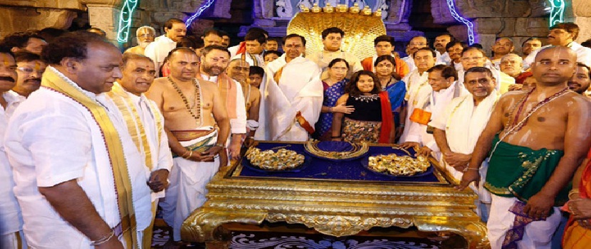 | तिरुपति में भगवान वेंकटेश्वर को तेलंगाना के CM चंद्रशेखर राव ने 5 करोड़ के सोने के आभूषण चढ़ाए | ||