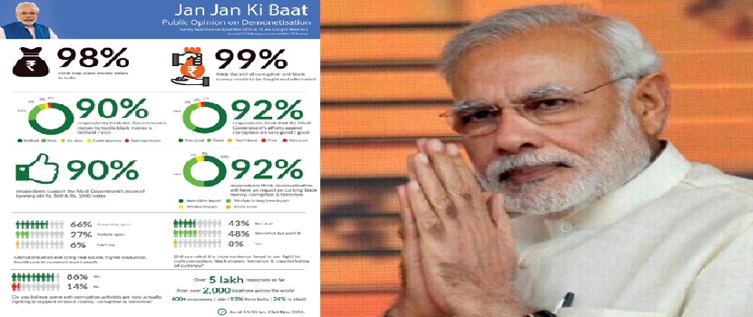 | नरेंद्र मोदी एप सर्वे में नोटबंदी पर सरकार को मिला 90 प्रतिशत जनता का समर्थन, PM मोदी ने कहा- शुक्रिया | ||