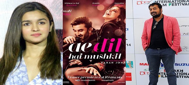 | अनुराग कश्यप और आलिया भट्ट ए दिल है मुश्किल के समर्थन में आए आगे | ||