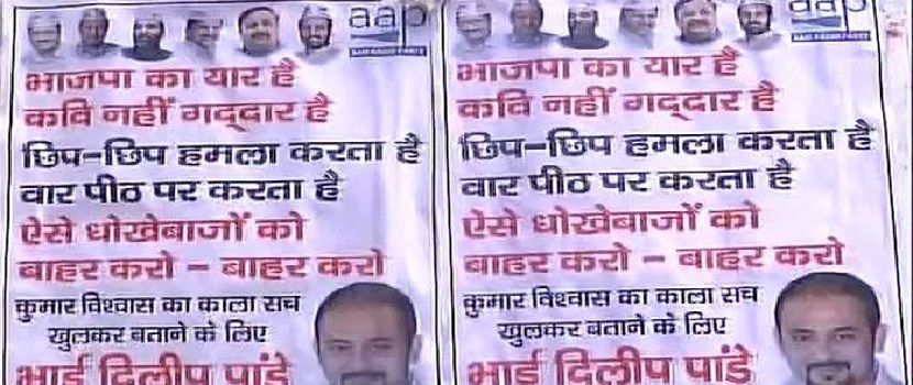 | कुमार विश्वास के खिलाफ पोस्टर वार, लिखा "भाजपा का यार है, कवि नहीं गद्दार है..." | ||